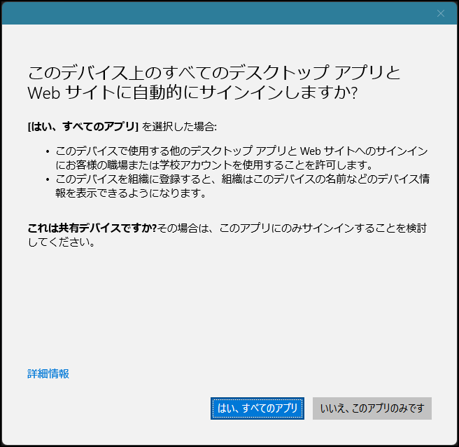 この画面で「はい、すべてのアプリ」を選びます。